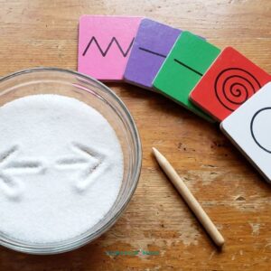 Fill a tray with salt and let your child trace simple lines and patterns using their finger.